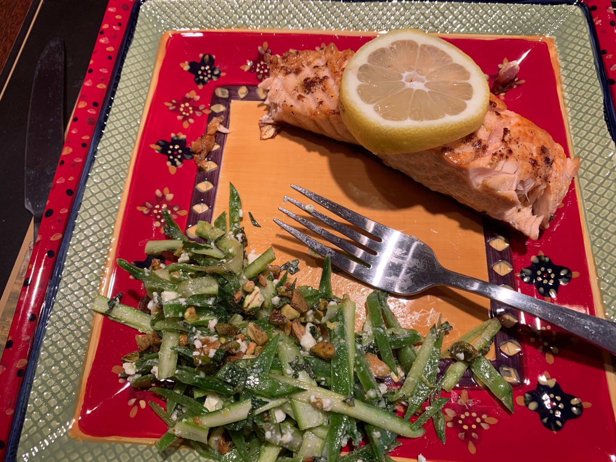 Salmon was easy to prepare, I made a lemon pepper mixture with lemon zest and pepper. Sprinkled it over the salmon and cooked it in a pan as instructed with olive oil. Both were delicious, and felt like a nice healthy meal.