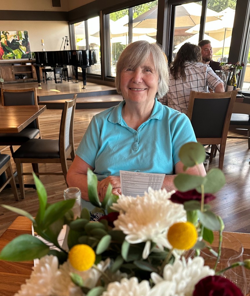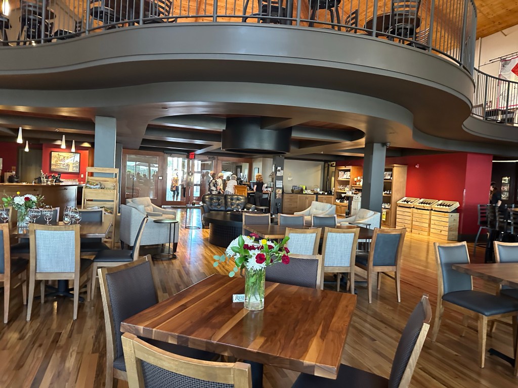 As one of the few wineries that opens at 10 AM, we were one of the first people there. We had a fabulous seating area on the outside terrace. We got lucky with the weather again today; it started off cloudy, but the sun came out while we were here. Our tasting associate was wonderful – knowledgeable about the wines, family, and ensured mom had the wines that were right for her. While I only drink water, Ginger tasted six wines, including the following: