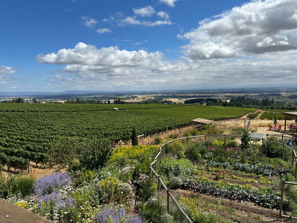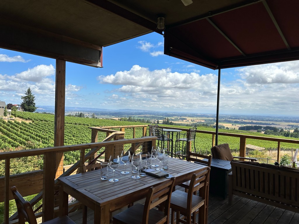 Today was the day of Ginger! She was chauffeured around to four different vineyards in the Willamette Valley area of Oregon. The Willamette Valley has over 900 wineries and 37,000 acres of planted vineyards. which is crazy since they didn’t start establishing themselves until the early 1970s. As someone who doesn’t like reds and Pinot Noir being the primary wine in the region, we were able to find a number of vineyards that had a decent selection of whites. Let me tell you a little bit about our day,