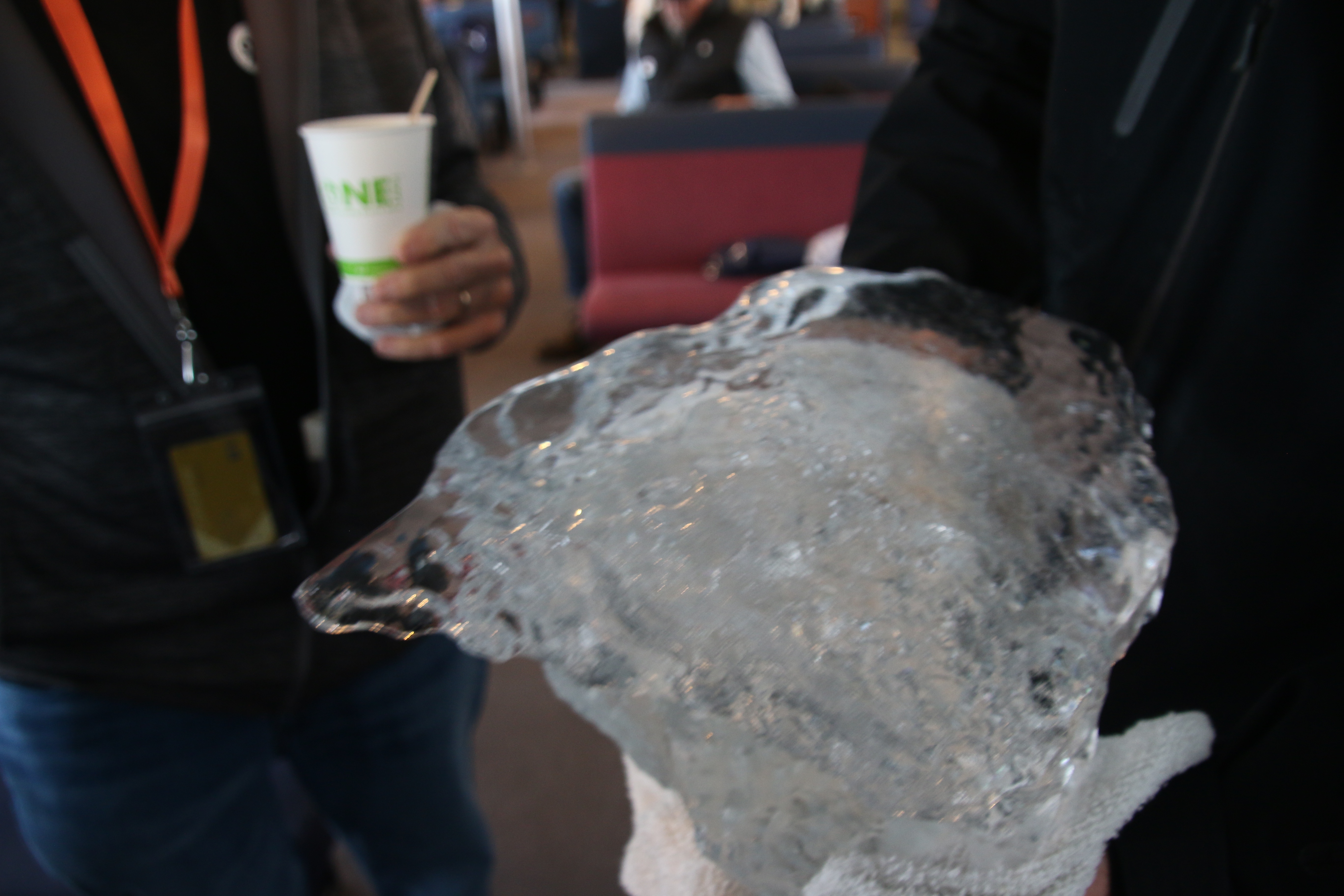 One of the crew members threw out a net and captured a few pieces of glacier ice from the water for us to touch, look at and explore.