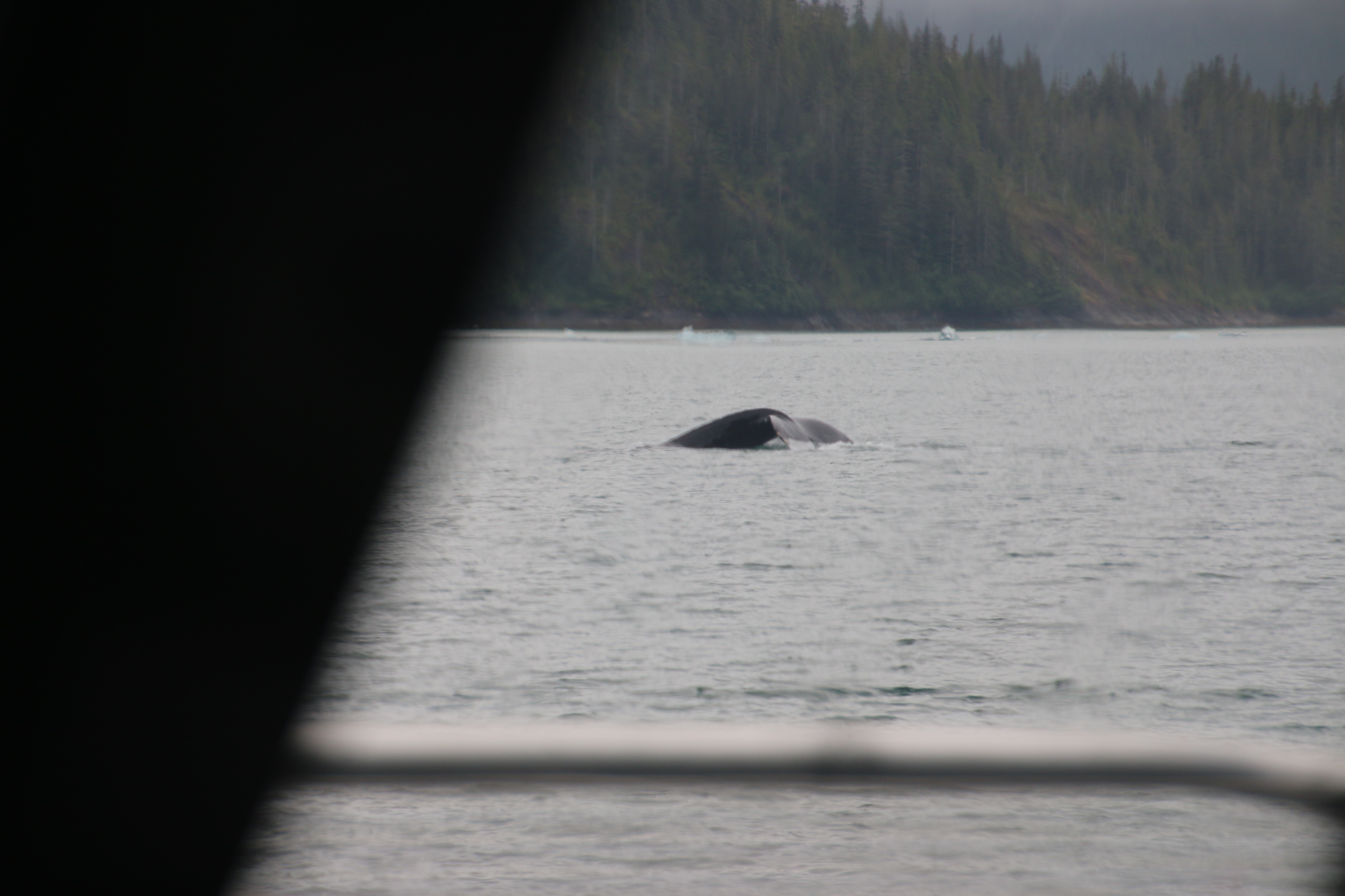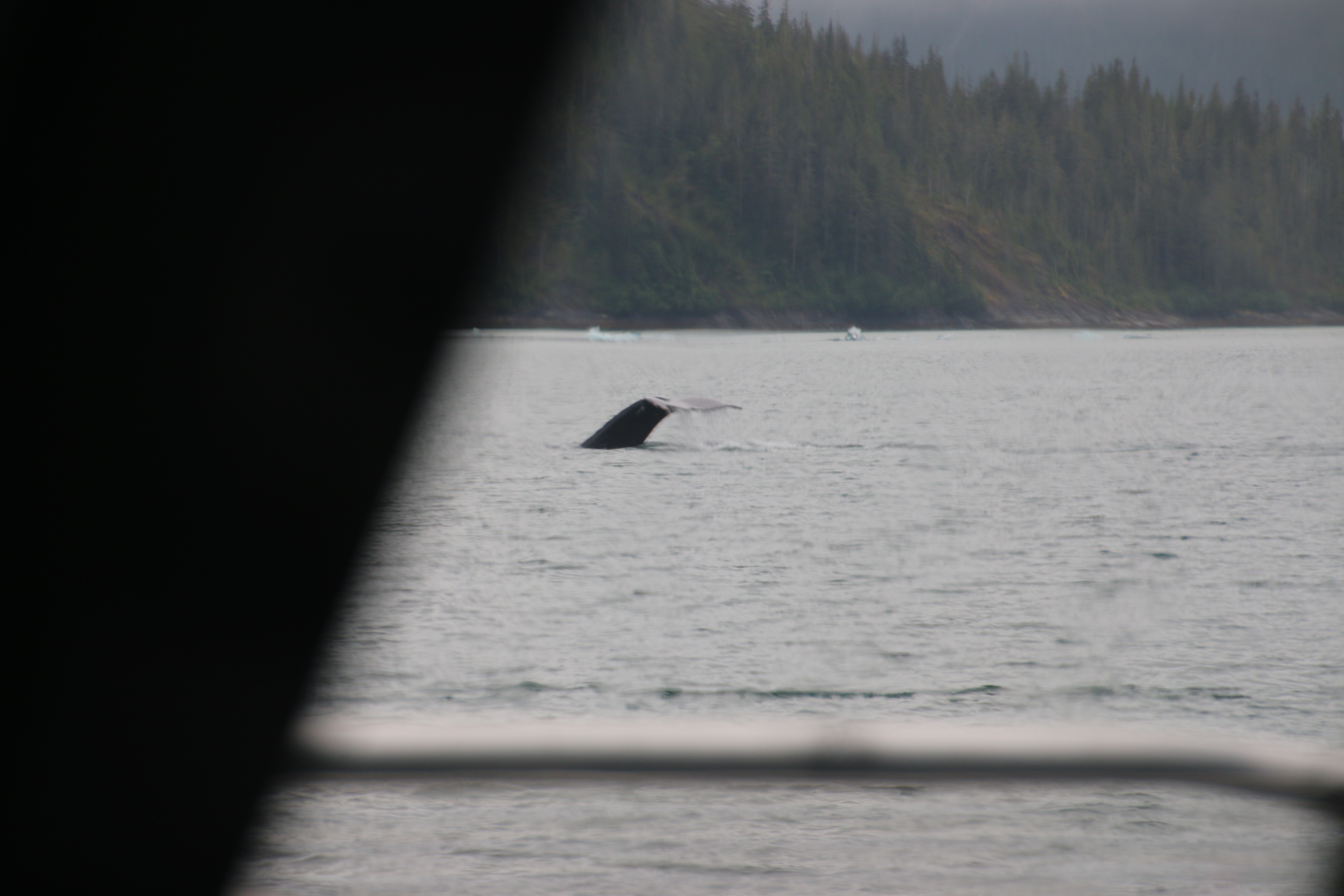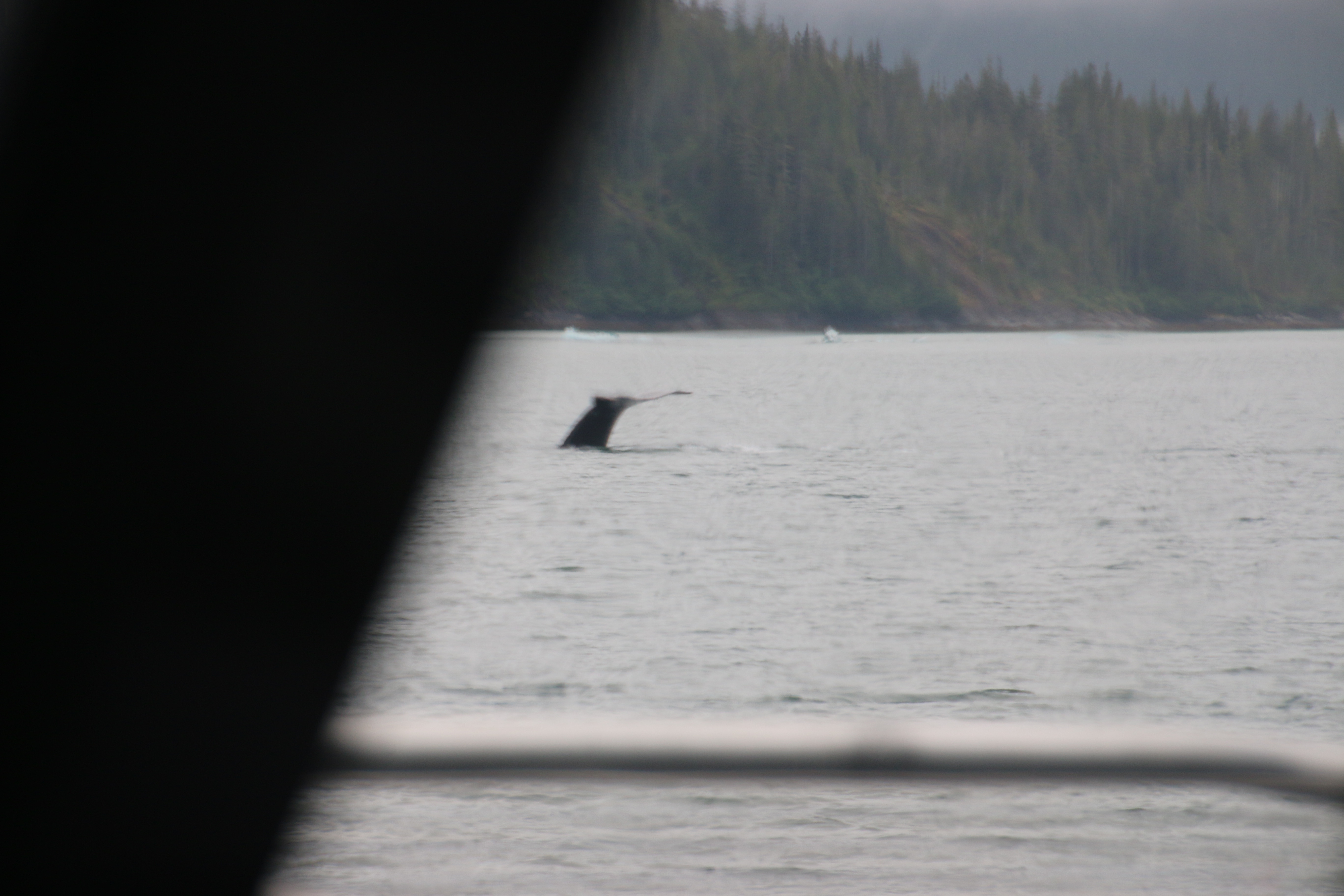 We had to take the boat to Juneau and that took approximately three hours. It was a long, boring commute, but we had some excitement along the way. For example, we saw a solo humpback whale in XXX. John spotted his blow hole and we found him or her for a little bit to see him come up and dive down at least three times. The crew on the boat said this is the first time they’ve ever seen a humpback in the world is waters. So that was kind of cool.