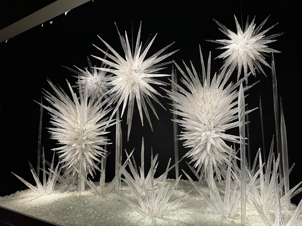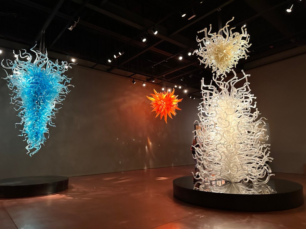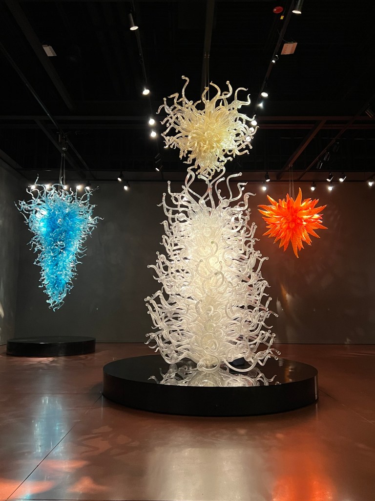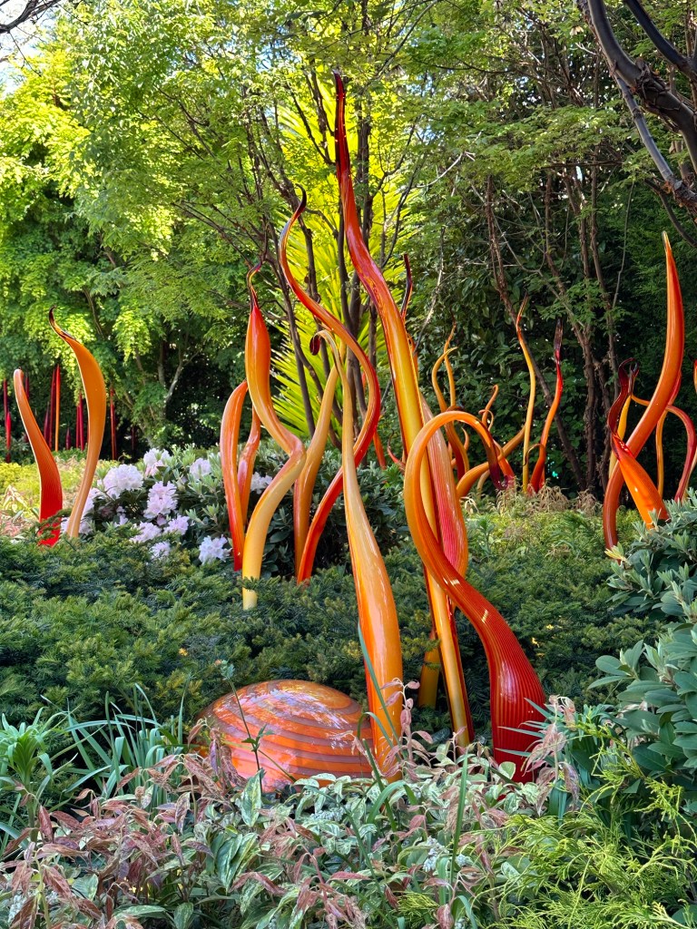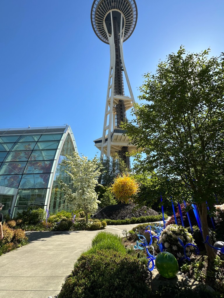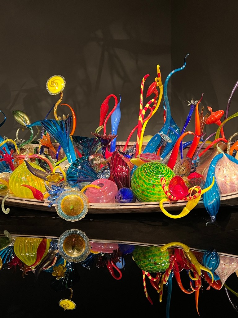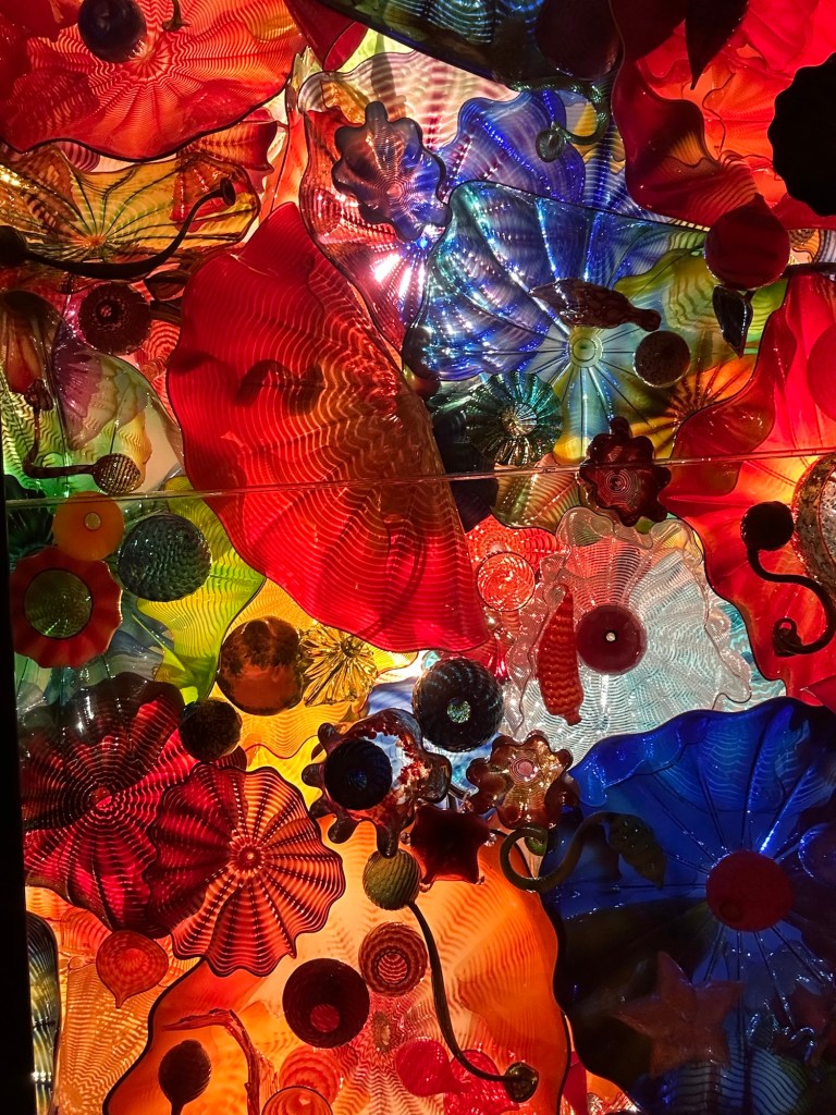 This was my last day in Seattle, but my plane wasn’t leaving till 10:45 PM. So there’s lots of things we decided to do. When Bowman asked me what my must sees were for this trip, my first two items were Pike Place Market and the Chihuly museum. So our first place to visit on Saturday was the Chihuly Gardens and Glass. Julian and Natalie met us there. This was a beautiful location. I couldn’t take enough photos. It was so gorgeous. We got to watch a few movies of Chihuly, also kind of cool.