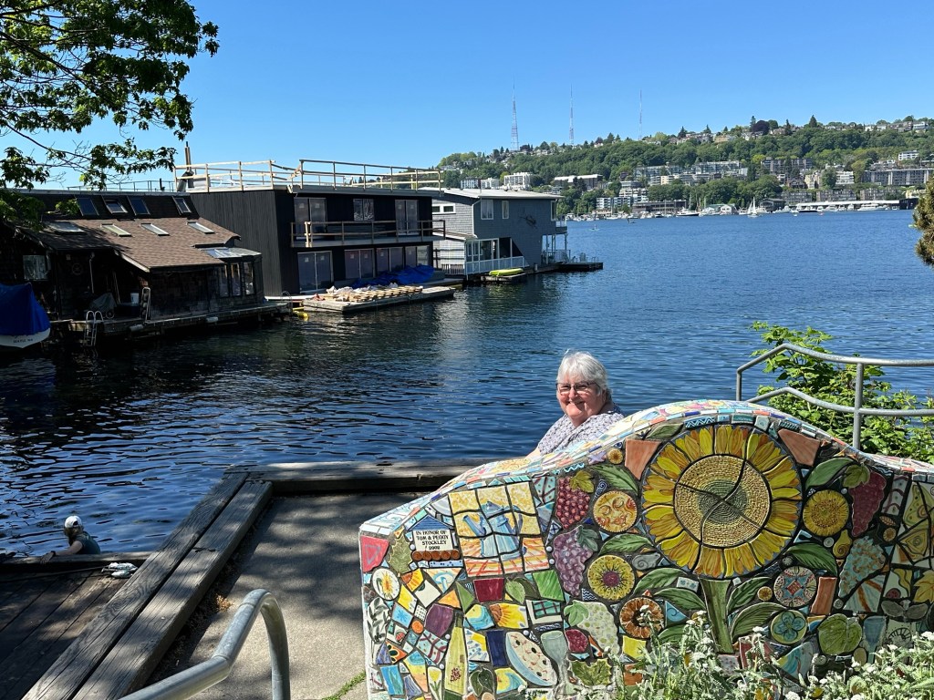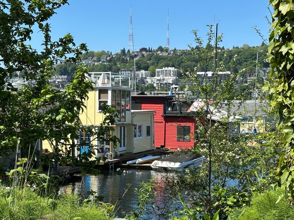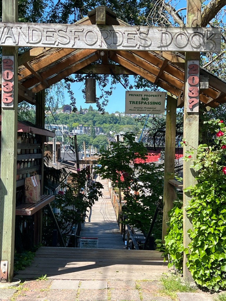 After leaving the museum, we drove along Lake Union to find the infamous houseboats at Terry Pettus Park. I kept hearing about them, but we never could see them. But we found them finally and this weird little park. We hope we were going to see a float plane land, but that didn’t happen. We blamed everything on Biden today’s and he was in town.