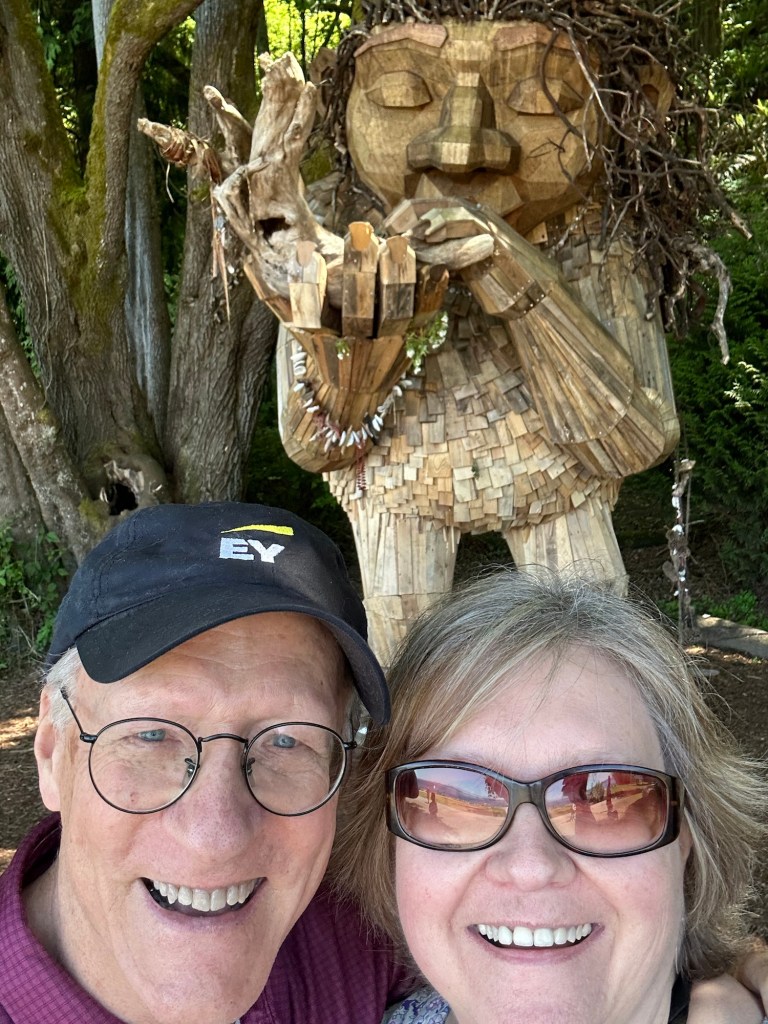 We went over to West Seattle, Alki where we saw the statue of liberty, Lincoln Park, and another troll. I didn’t get a picture of the Statue of Liberty. That’s OK. It was very small like the size of a person. Natalie described this area as very similar to California coast Sausalito. But again another beautiful day with sun and blue skies.