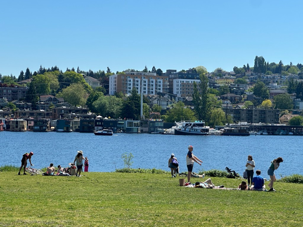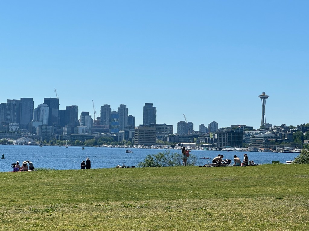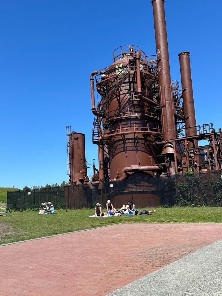 Our last stop before heading home was gasworks park. I’ve seen this in things to see in Seattle, and I thought we weren’t gonna be able to stop there so it was a nice opportunity to pop over and walk around. It was quite a large part and there were people taking like a kung fu class. And lots of people sitting on the grass, enjoying this beautiful weather.
