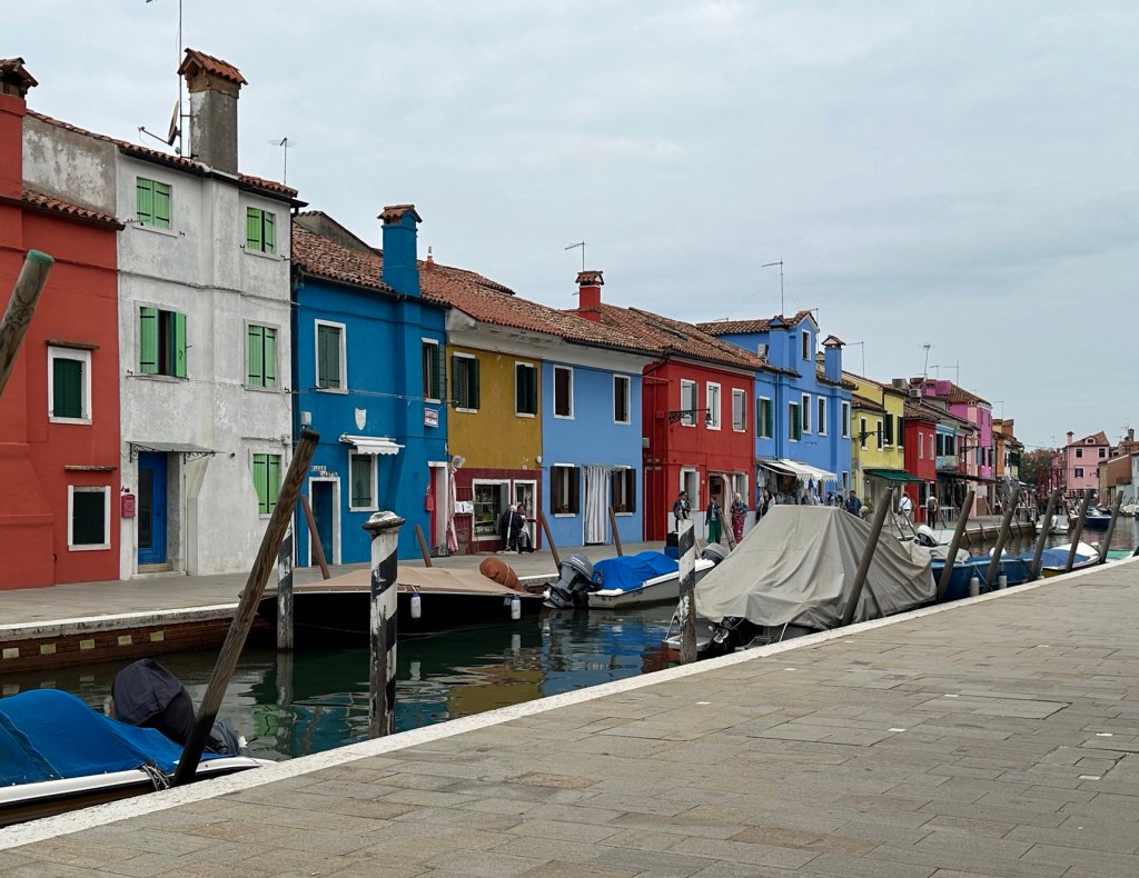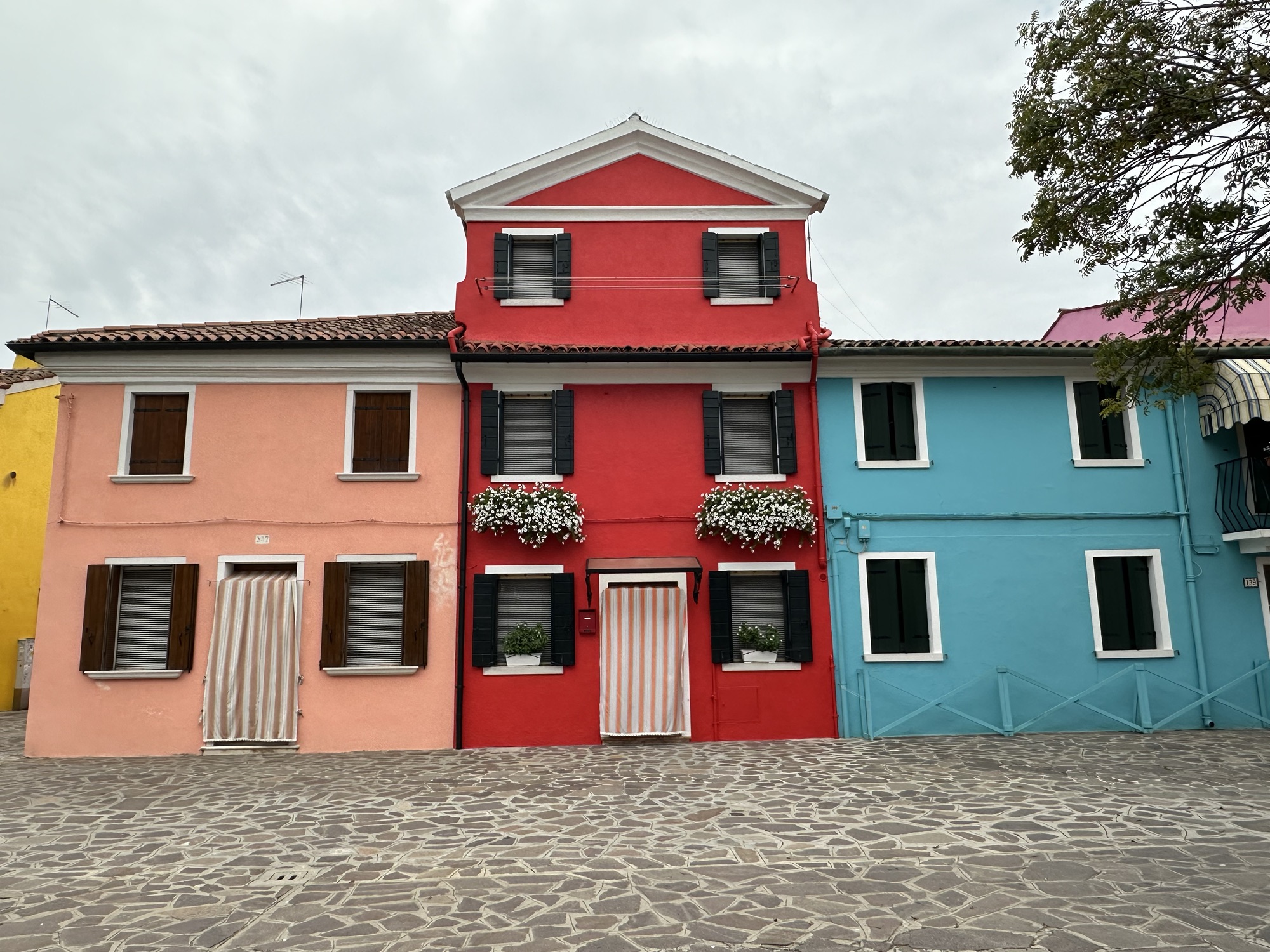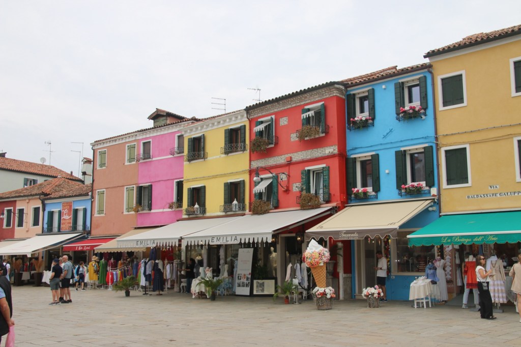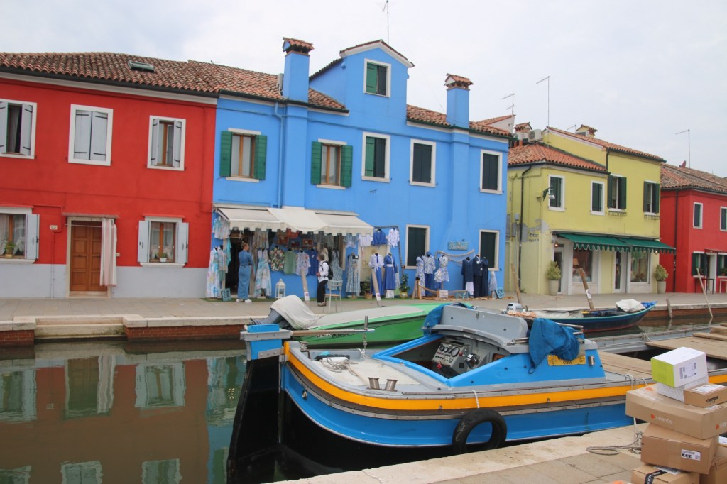 Our second stop was Burano, which is known for their lace-making and beautifully painted houses. In the 16th century the lace of Burano became the most famous in Europe and in 1872 was created the first school of lace, known as “Scuola dei Merletti.” Regarding the painted houses, the story it is that because of the fog and not so great weather that the families painted their houses bright colors so the fisherman when returning home could easily find their pink, purple or a yellow house easily. Mom was very excited when she learned that a Hallmark series she had seen had depicted lace making in Burano. It was called the Wedding Veil, John Kell, if you’re familiar with it.