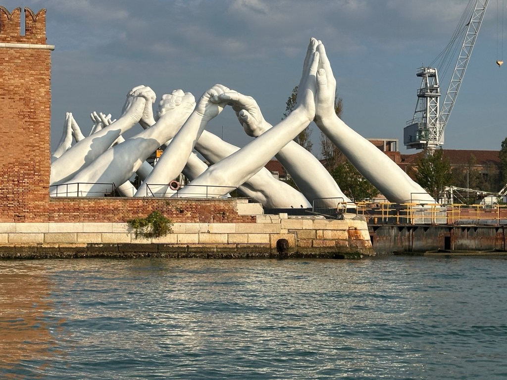 Today we got up bright and early to meet our tour group in San Marco for our tour of Murano and Burano. It was another English speaking tour, which means there were definitely some Americans, Brits and I think some Italians who spoke English. We saw an interesting art installation called Building Bridges by an Italian artist called Lorenzo Quinn from 2019. I wanted to see one of his pieces of work that was too large hands like holding up a building, but we never found that. This is six pairs of hands arching 50 feet over a waterway near a former shipyard. The hands are made of white resin to mimic the white marble seen around Venice and symbolize the need to build bridges and overcome differences. They stand for hope, love, help, faith and wisdom. When they were unveiled, Andrea Bocelli performed.