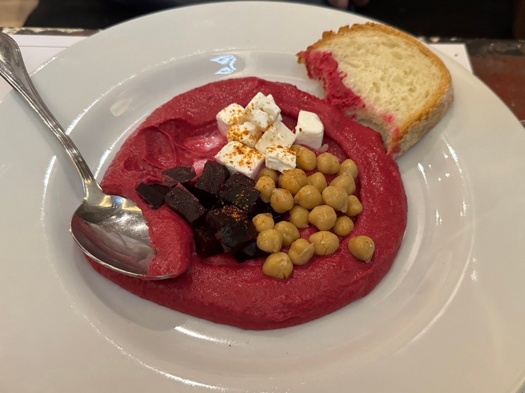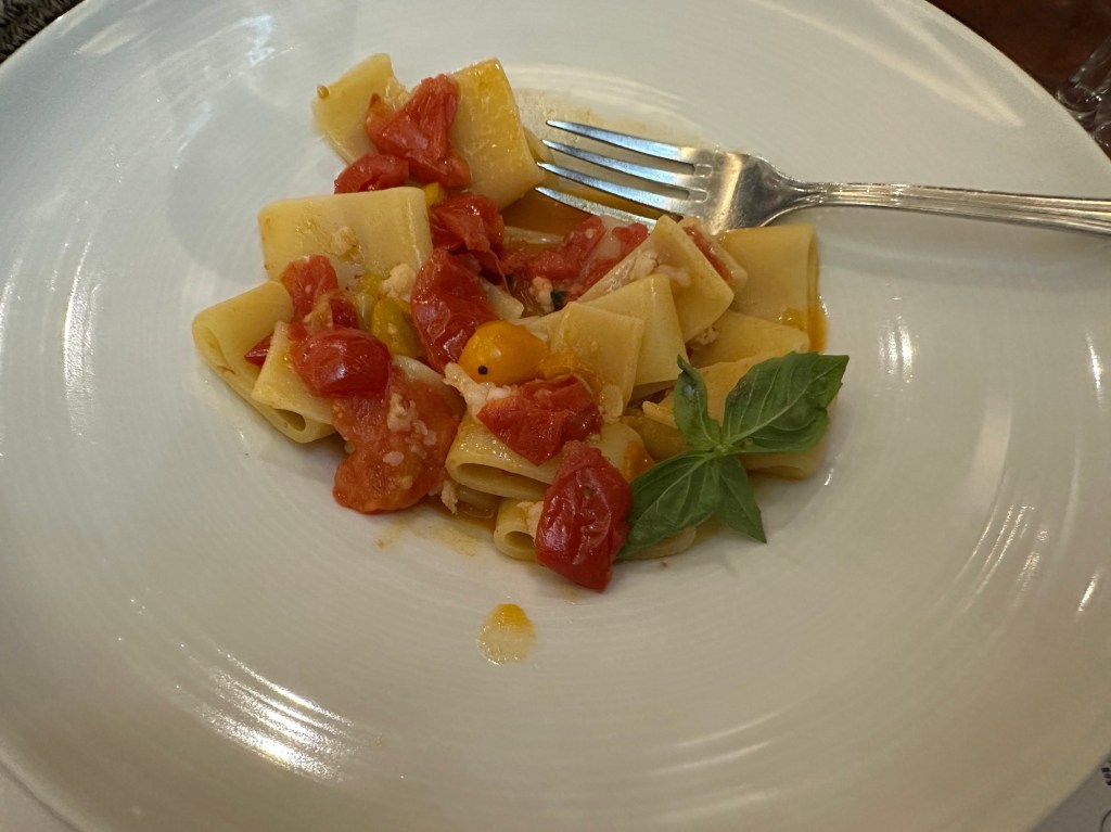 The food was delicious. The menu was only in Italian so it was challenging to figure out what everything meant. Mom ordered the hummus which was was beetroot humus with chickpeas, cooked beets, and feta cheese accompanying this dish. I ordered a pasta dish, with a pomedoro sauce with shrimp and tomatoes. It was a light broth. That was very flavorful.