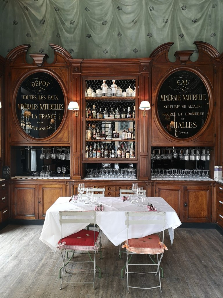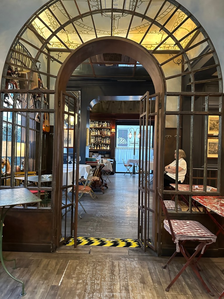 It’s hard to put a label on Cafè 19.26 which by the way was not founded in 1926 as the name suggests. The numbers 19 & 26 are lucky roulette numbers and hold a special significance for owners, brother and sister who take great pride in their restaurant, created with the desire to give the neighborhood and corner location an upgrade. A lot of care and love has gone into the interior decor thanks to Tuscan designer, Becattini making you feel like you are a guest in someone’s home. Against a backdrop of dark wood and marble, decorated with artwork, vintage signs, mirrors and trinkets from around the world, each space and room has its own special ambience, similar to the flair found in Montmartre. The corner room was once a pharmacy and the stunning original cabinets have remained. (pictured below)