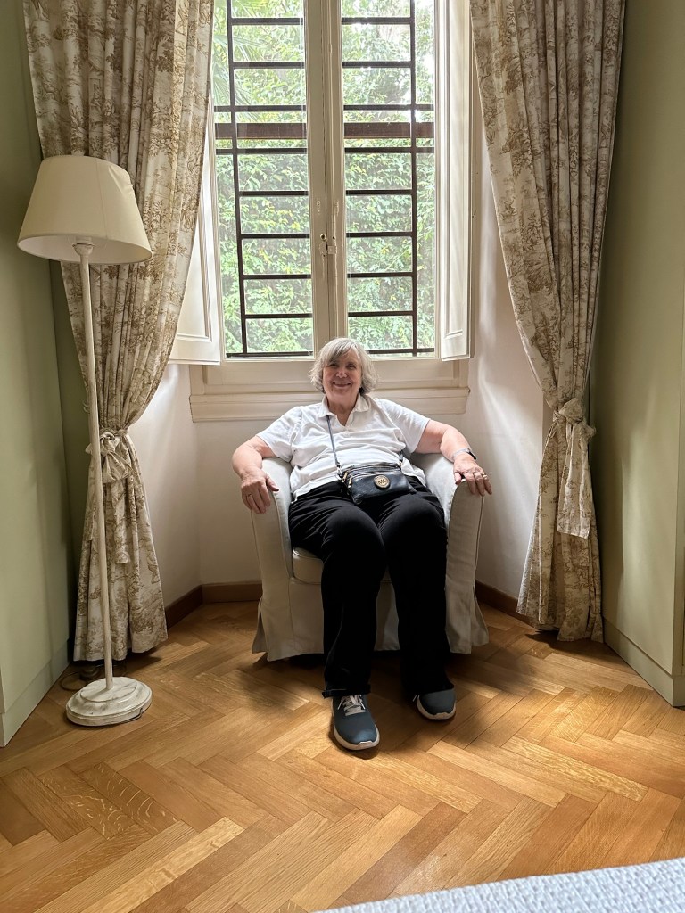When we arrived in Florence, the queue for the taxi was quite long. Somehow, another I dropped a piece of paper out of my pocketbook, and ask mom if she could pick it up. Which is clearly a mistake. She leaned over and the way her backpack took her down. It was another Ginger slow fall onto her butt move. All is fine. You could tell nobody falls that slowly and really hurts themselves. A fellow passenger helped us get her up off the ground. We waited another 15 minutes for a taxi. It’s funny when you haven’t been around cars for four days, you don’t realize how much don’t miss them. The honking, aggressive, driving, motorcycles noise, etc. much more peaceful in Venice.