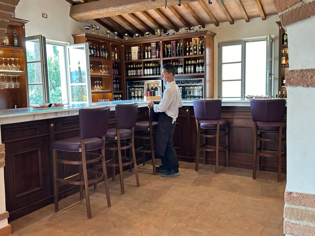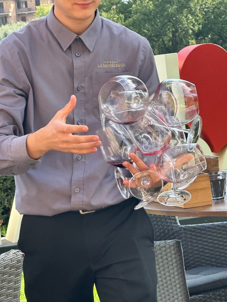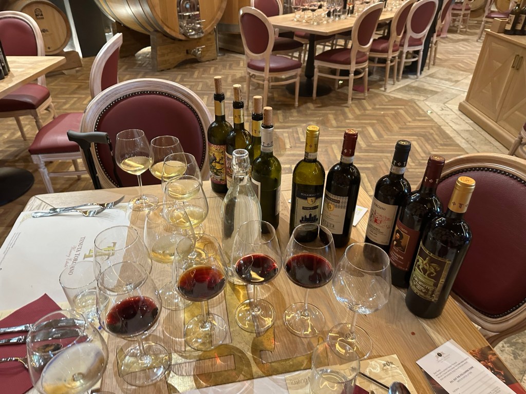 Our second winery, we visited was Podere La Marronala, also located in the same area only about 15 minutes from our first one. This was on organic and biodynamic, family-run farm. Which means no pesticides, and for me it only meant water for to drink. They don’t have anything else on the property to drink, other than wine and water.