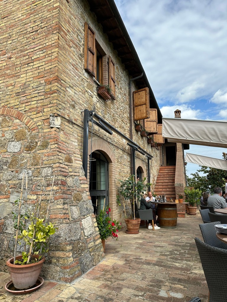 I was a little nervous about driving in Florence, but honestly, that was the easiest part of the day. It took us about 45 minutes to drive to San Gimignano. We weren’t planning on going into this little wall city today, but we had two wineries to visit in the area.