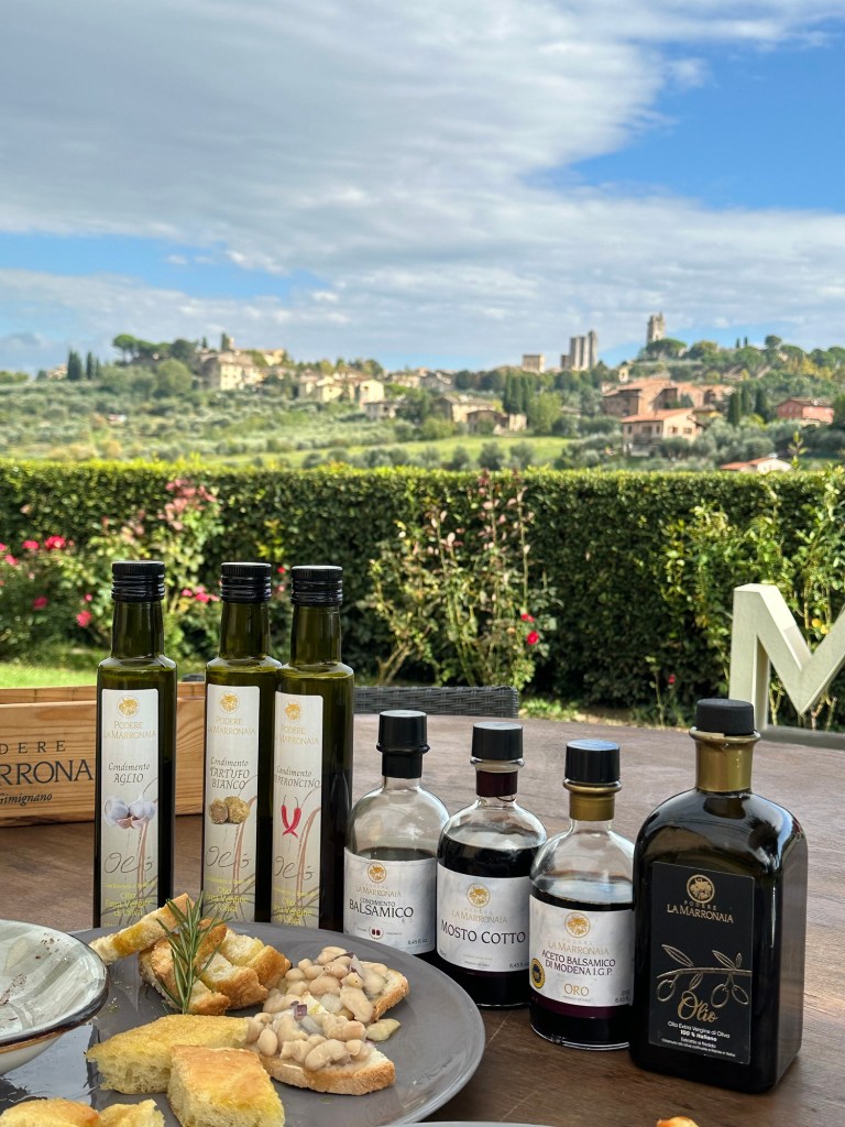The best part of this winery was the view. You could see San Gimignano from our table. We were rather impressed by the number of wine glasses any of the waiters could carry in one hand. I enjoyed the balsamic vinegar and olive oil tasting more than anything else.