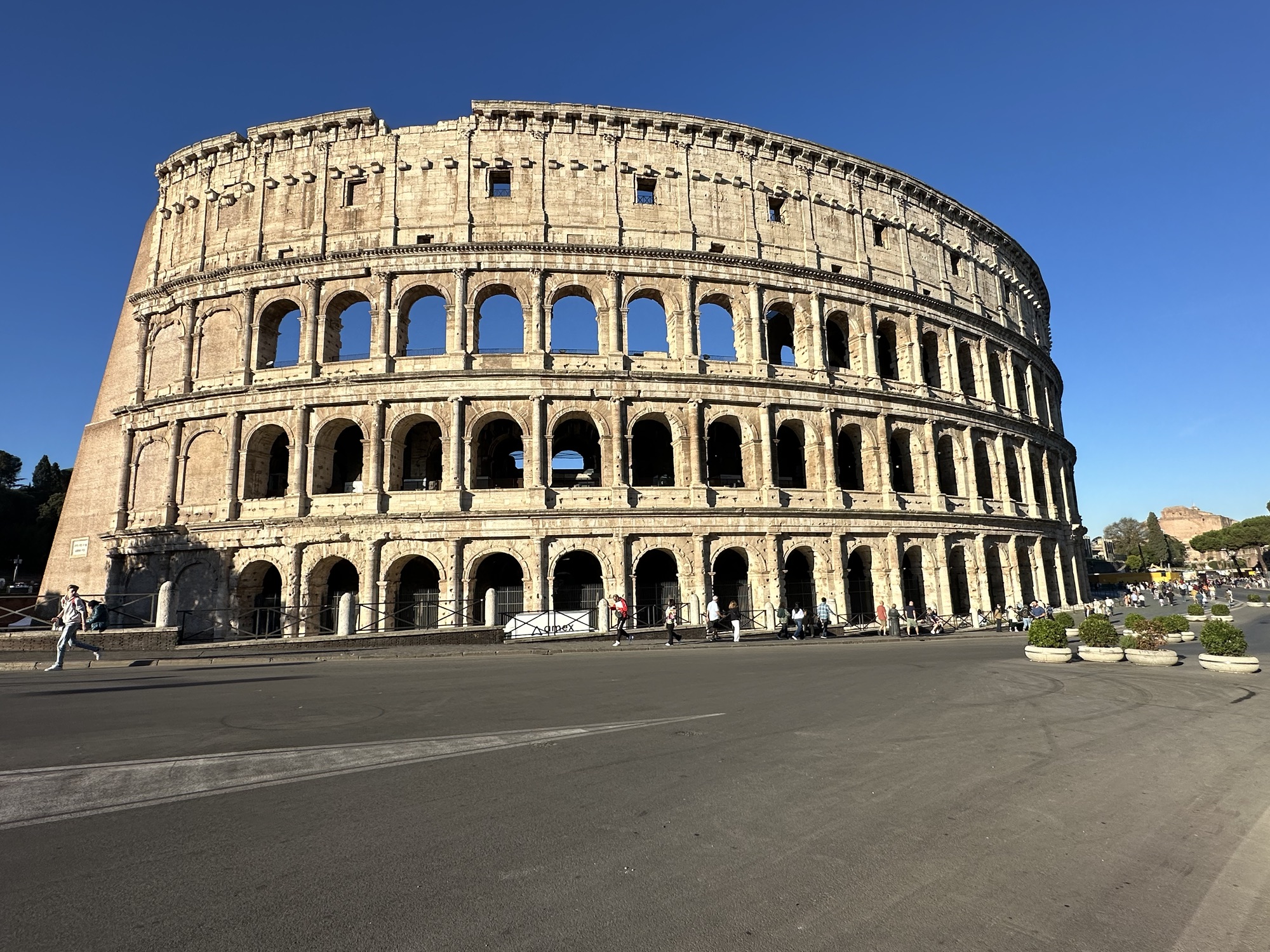 Today was my second day of realizing that I am more prone to dehydration than I anticipated. I felt a little lightheaded at times inside the Colosseum, but I was fortunate to find seats to sit down on and drink some water, so we moved on. After our tour was over, we started walking to the Roman Forum. I needed to sit down again so we did. We sat next to a water station, which was completely convenient. And free. So we filled up some water bottles with nice cold water and I drank all of that one bottle and filled up a second time. My back was really bothering me. I don’t know what we did yesterday that would’ve hurt it, but it was a long day yesterday. I leaned down to just stretch my back and I think I passed out. Which I’ve never done before. I found myself on the ground and an American man, came over to help me up. I didn’t even realize I was on the ground. I think it was only for a few seconds, but it was still unusual for me and embarrassing. I sat and drank more water. We decided instead to go get lunch and some fluids instead of going to the Roman Forum that too completely is full sun. Disappointing not to go there cause it looked kind of cool, but well, my bad.