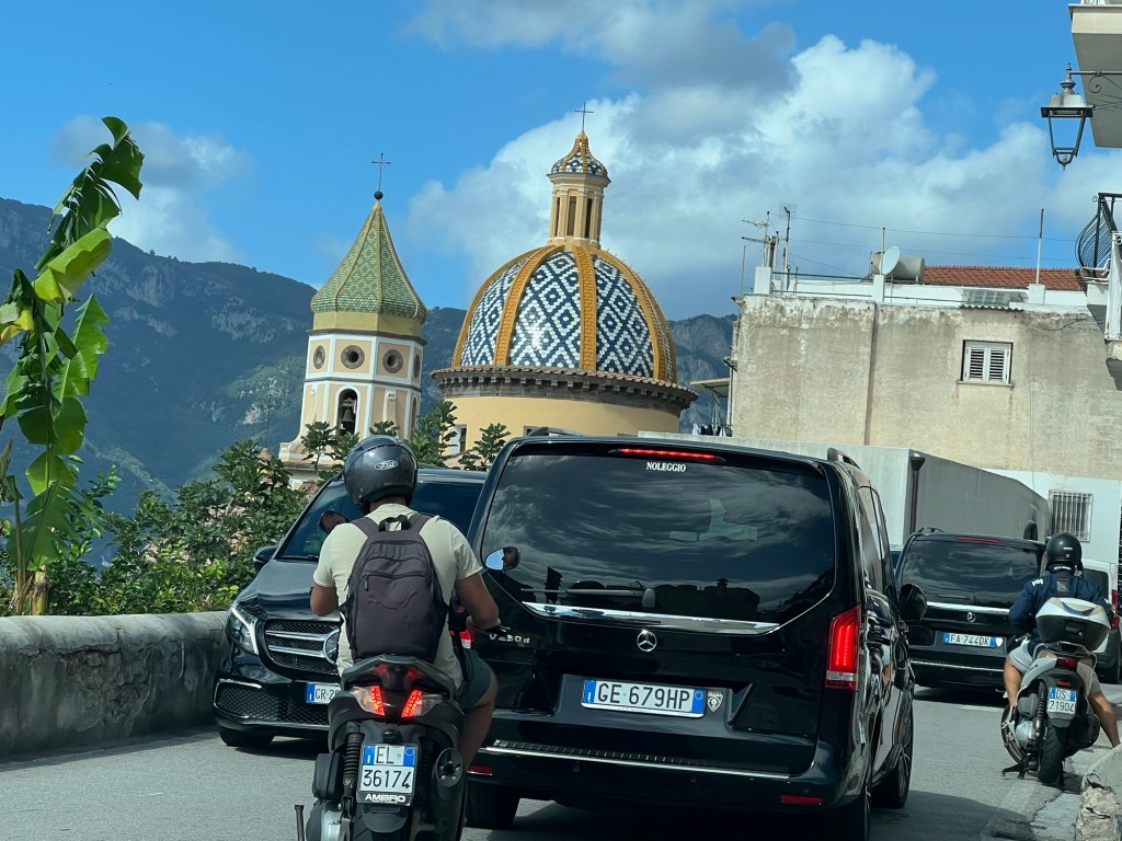 The drive to the airport was supposed to take approximately four hours. There were some places where traffic was rather dense both on the Amalfi coast, and after that. I was happy to drive behind 2 Mercedes vans during the drive through Positano. That’s where the windiest parts of the road are. They were doing a good job at avoiding the buses or should I say not getting hit by the buses. There was really only one section where I was pretty sure I was going to lose my mirror from a bus. But I did not. These photos were taken from of Positano and Praiano during our drive on the Amalfi coast.