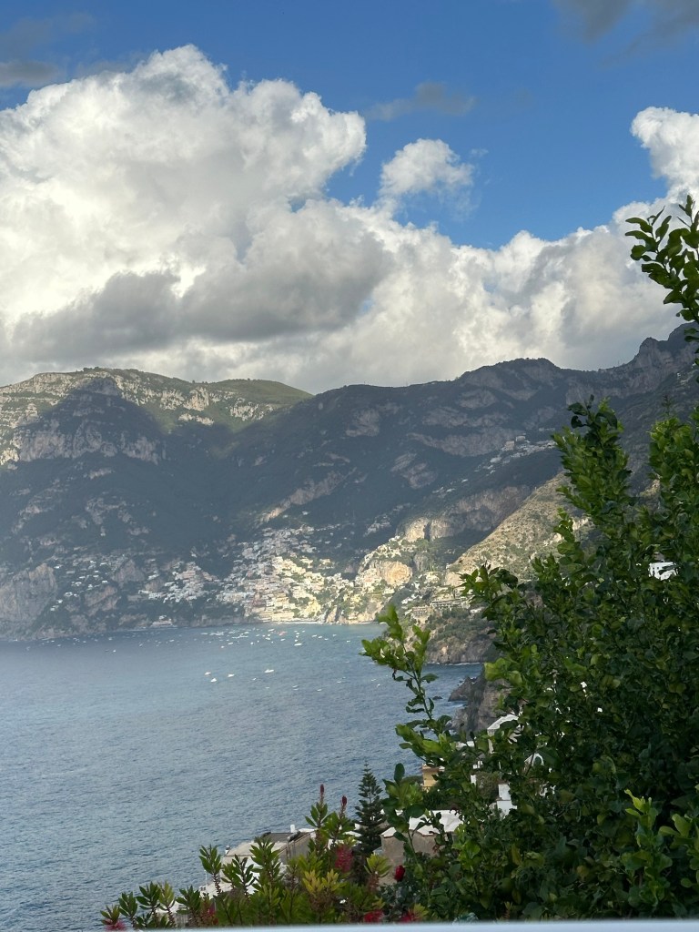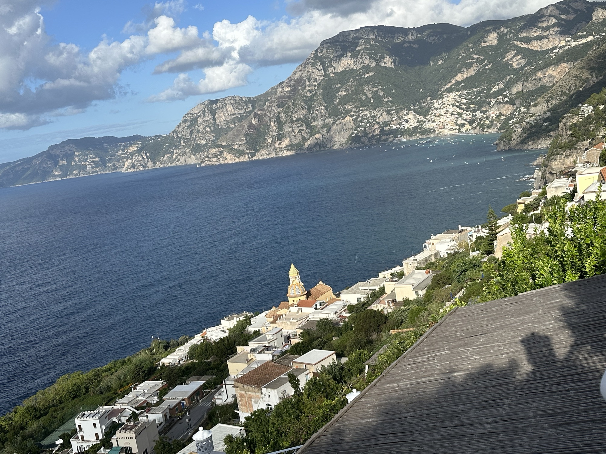Today was our last day on the Amalfi coast and technically our last full day in Italy. We got a text this morning around 7 AM from the captain of our boat and unfortunately he needed to cancel. The weather conditions were not ideal. When we looked at the water, it looked fine. But there were Swells and wind that made it not a good boating day. While we were disappointed, we were happy to know that we were getting a full refund since we did not cancel the trip. Yay! So instead we had breakfast at our B&B La Barbera. We ordered a light breakfast thinking we would be leaving in 45 minutes after eating, but one of the women that worked there offered us some additional things such as the cake of the day, which was a hazelnut cake. And some delicious berry yogurt. Then we were full clearly full. The question was what do we do next. It has been a busy trip and we decided that instead of running around town that we would chill in this beautiful location watching the sun go across Positano and Praiano. These photos were taken from the balcony where breakfast was served.