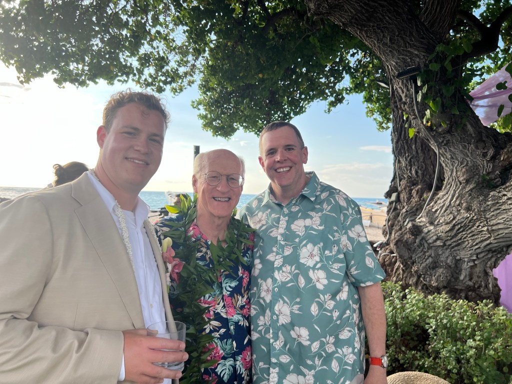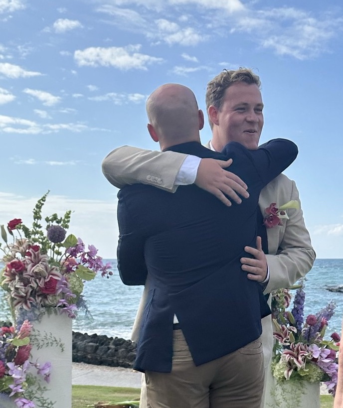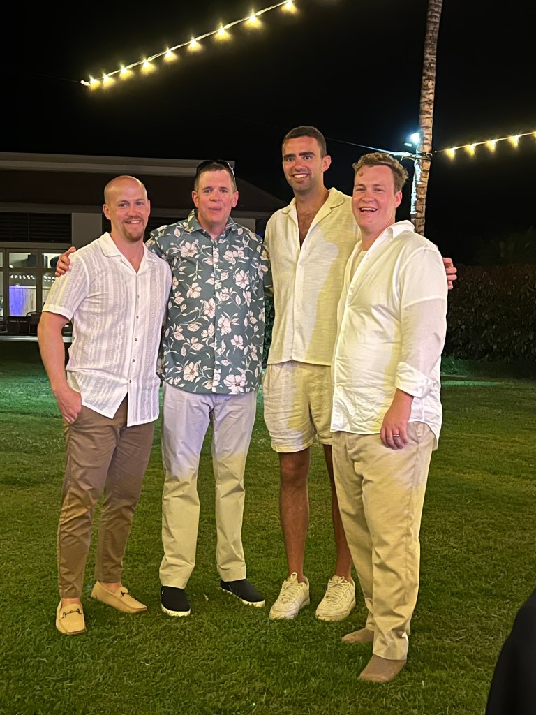 The wedding didn’t start until 4:30 PM, but Bowman, John and Patrick needed to be there at 3:30 for photos. So this was a chill day leading up to the event. John made us a wonderful breakfast, we thought about going in the pool. But some people chose to nap and then Julian needed his pants. That does sound a little strange. He moved out of the hotel, so Natalie had a place to get ready, and he moved over to Nick’s place. They were supposed to be done the day before but when he asked for them, they weren’t ready so they needed to be pressed. He called Bowman asking for some help so we got the pants and brought them to him. It was one of those days we weren’t sure if anything was gonna be needed from John and Bowman.