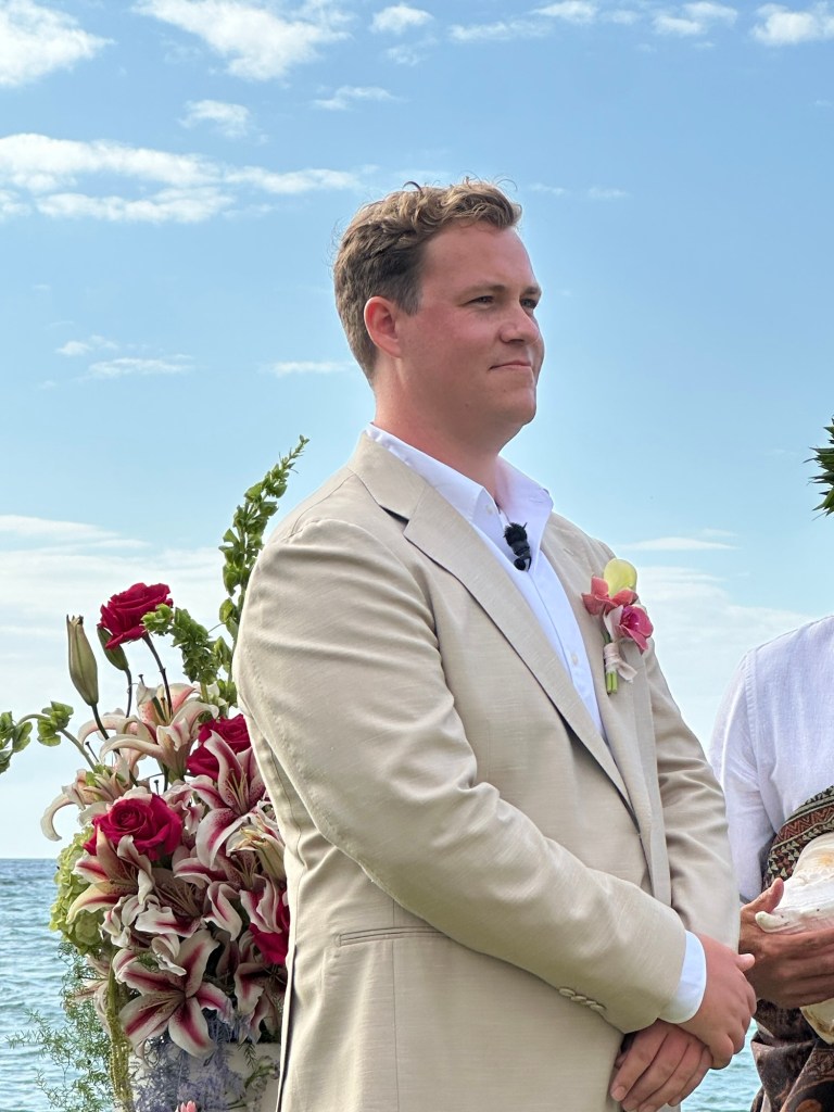 When the service started, the officiant blew through a conch shell at all four directions north, south, east and west. And then he said a prayer to what I assume was to prepare the guests for the family and the bride’s arrival. The siblings walked down the aisle first, then parents, then grandparents. Julian hugged everyone.