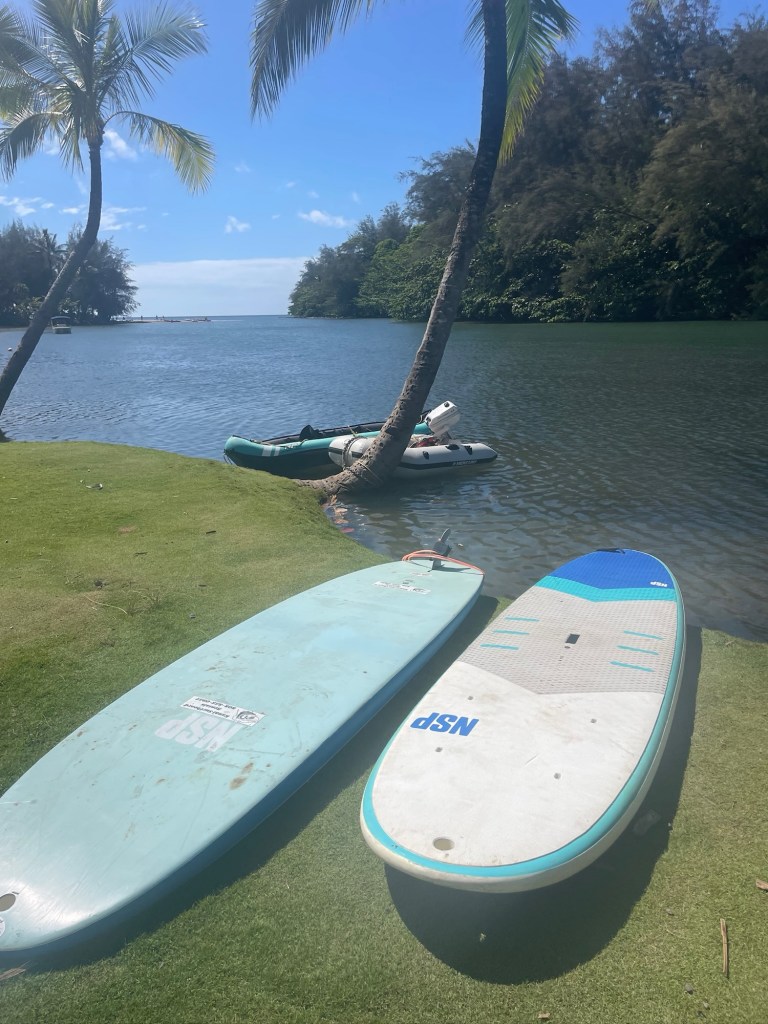 In the meantime, Dany and Patrick rented some paddle boards and took them to the Hanalei River near the bay. They were able to rent the boards for two days, which means they can use them again tomorrow.